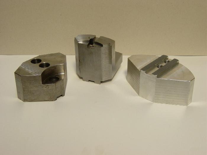 Specialiteit: zachte klauwen voor alle types draaibanken en klauwplaten. Alle afmetingen verkrijgbaar, ook grote stock in voorraad. Afwerking volgens tekening of gietstuk.